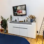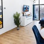El establecimiento ofrece una terraza y una zona de estar con climatizador y medidas de seguridad como detectores de humo y una llave electrónica. El apartamento también incluye comodidades multimedia como internet de alta velocidad y televisión por satélite, que permiten a los huéspedes relajarse a su antojo. El alojamiento cuenta con 1 dormitorio. Este apartamento tiene 1 baño con una ducha a ras de suelo y un inodoro separado de la ducha. Además, encontrarás secador de pelo y toallas de baño.