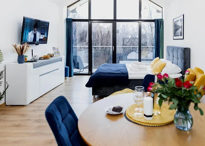El Apartament dla dwojga w Szklarskiej Porębie z widokiem na góry i las Szklarska Poręba incluye un centro de bienestar, a un corto paseo de Haus von Gerhart und Carl Hauptmann. Este apartamento de 33 m^2 invita a los huéspedes a disfrutar de la piscina de inmersión, la sauna y la piscina cubierta.